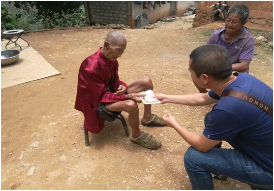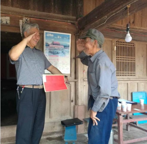 ▲慰問(wèn)瀾滄縣上允鎮(zhèn)上允村水塘一隊(duì)老兵陳小友