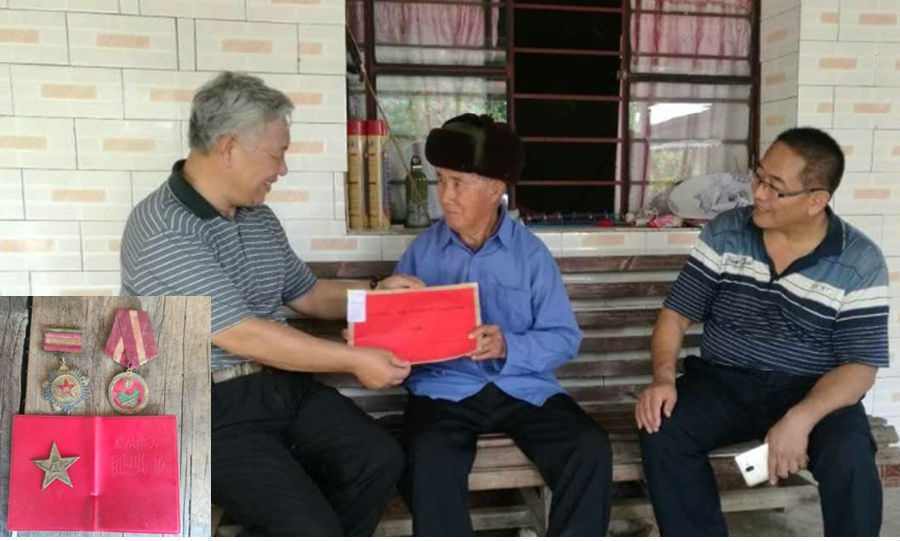 ▲慰問(wèn)瀾滄縣上允鎮(zhèn)南洼村田頭寨老兵魯大七