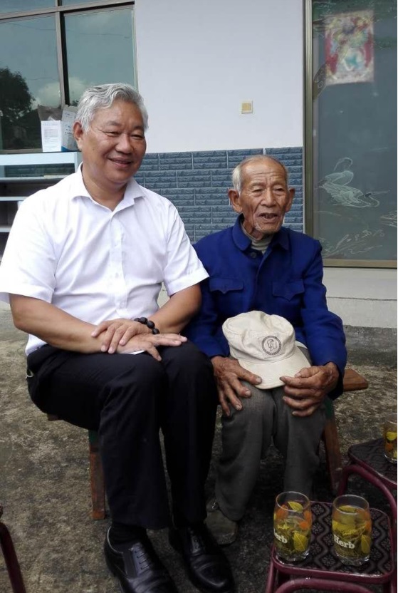 ▲慰問(wèn)寧洱縣同心鎮(zhèn)富強(qiáng)村拉格么組老兵楊發(fā)清。楊發(fā)清同志于1953年入伍,1954年入黨,當(dāng)過(guò)團(tuán)長(zhǎng)警衛(wèi)員,班長(zhǎng),為革命扛過(guò)槍?zhuān)蜻^(guò)仗。