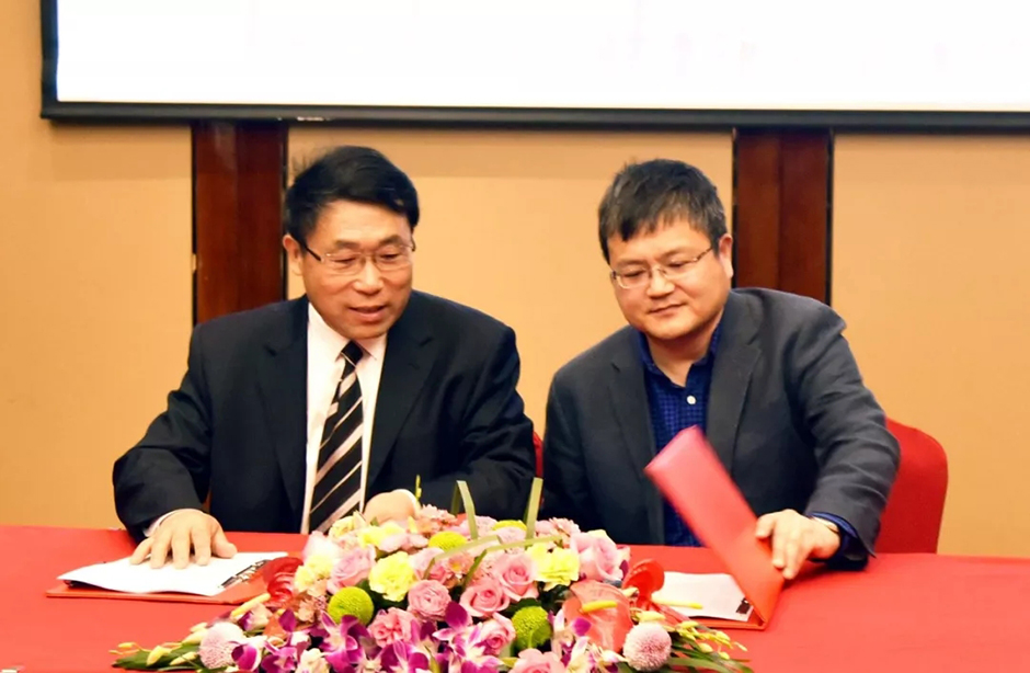 俞錦方董事長和姜巖峰教授上臺(tái)簽約