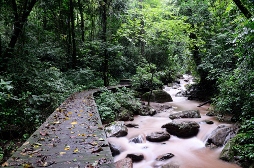 木棧道是森林里最自然的人工寫實(shí)。踩在踏板上發(fā)出與自然和諧的聲響,茂密的參天大樹透射出幾縷陽(yáng)光灑在身上好不愜意,比起高樓聳立穿梭在飛奔的人群中與時(shí)間賽跑,我更愿意呆在這,關(guān)掉與外界一切聯(lián)系,做個(gè)山間野夫用力呼吸來凈化我已染塵多年的身心。在這里耳邊只有風(fēng)聲、蟲鳴、鳥叫,置身其中仿佛都不是自己,全身飄飄然放飛著靈魂,跟隨著水聲穿過密林來到一片開闊的土地上,高山流水,云霧繚繞仿佛來到仙境中,導(dǎo)游告訴我們說:“這是要下雨的節(jié)奏,不過沒關(guān)系,下雨了森林就開始唱歌了。”果不其然,雨滴飄15.jpg落下來,奇妙的是它并不是涼的,飄灑在身上唱起了歡快的“滴答”歌,爬滿粗藤的大樹互相在雨里講訴著古老的故事,這個(gè)時(shí)候你只要用心聽,你就真的能聽到森林在唱歌,雨沒過多久就停了,我們圍成圈坐下來,呼吸著來自泥土的芬芳,雨后的森林更是通透,蝴蝶在溪谷間翩翩起舞,各種水禽在濕地印腳丫,偶爾會(huì)有幾只野猴來到你身邊向你討食,打量你一番甩尾走人,森林里隨處可見各種珍貴的活化石“石斛”、“中華桫欏”,導(dǎo)游說它們從恐龍時(shí)代就一直在這里直到至今,走走停停你完全不會(huì)感到疲憊,一會(huì)密林環(huán)繞,一會(huì)視野開闊,一會(huì)驚奇發(fā)現(xiàn)黑熊就在你身邊游走但人家對(duì)你不感興趣,一會(huì)乍一看才知道你踩的這個(gè)樹根只不過是十米開外的古樹的支腳,不管是天上飛的還是地上跑的,即使你突然闖入進(jìn)來也能馬上與他們?nèi)跒橐惑w,這就是這片森林的胸懷,你倦了,累了,不能向前了,不妨自私的把靈魂托付給這片森林讓其為你凈化,升華。